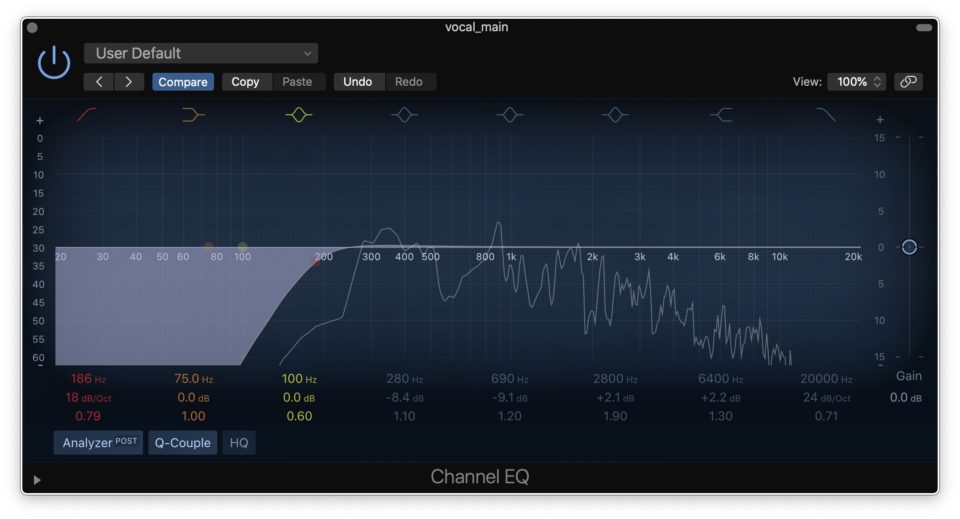 ボーカルは録音時にマイク自体にハイパスフィルターを搭載しているものがあり、