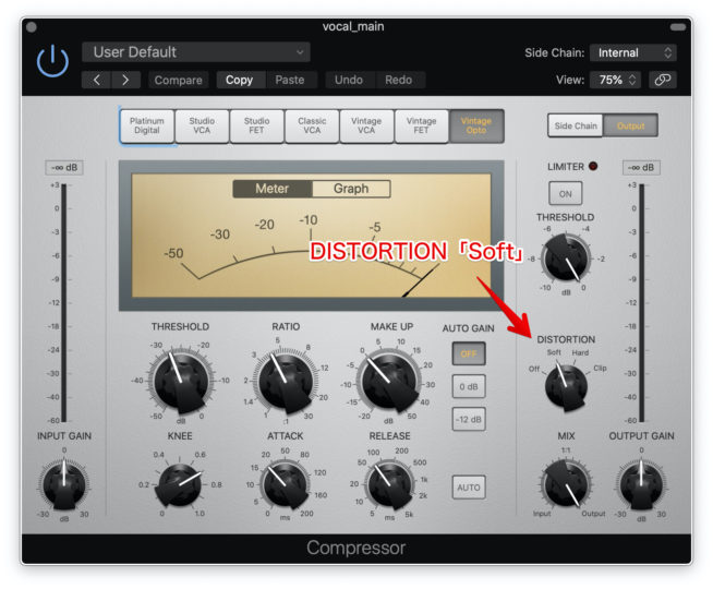 これまでは「OFF」状態で使っていましたが、ボーカルだけ「Soft」に設定しています。