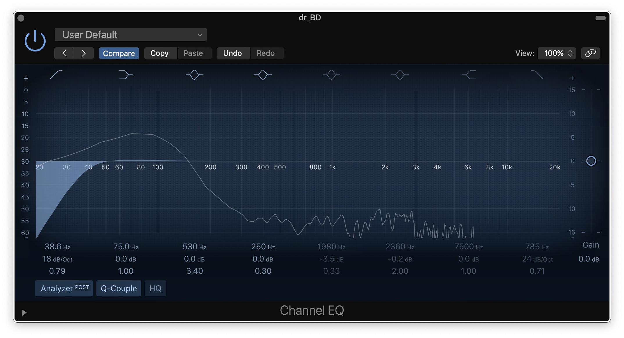 これでBDの下ごしらえは完了です。コンプをオンオフして音を確認してみましょう。