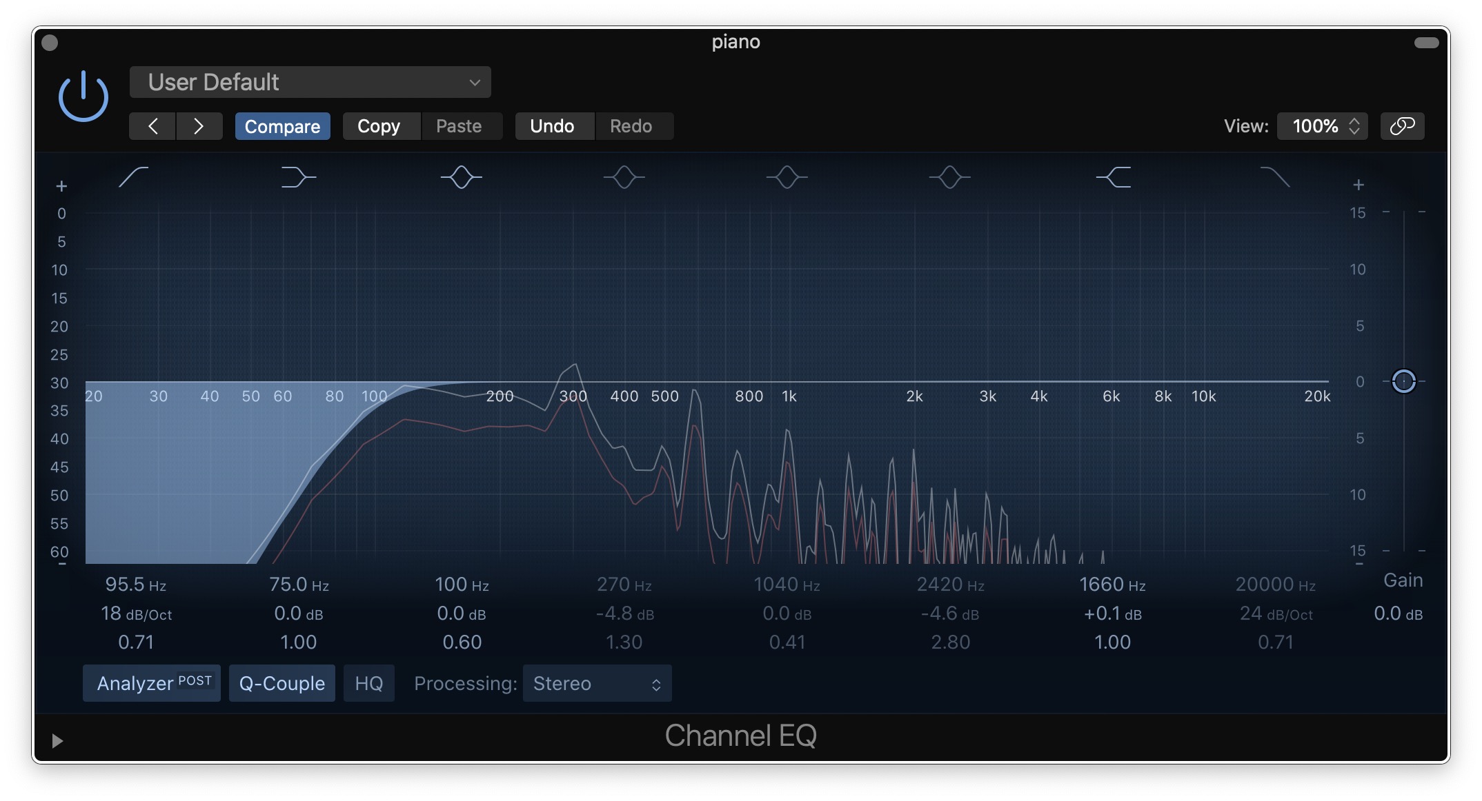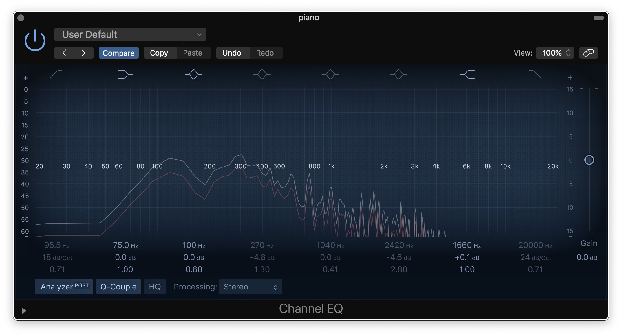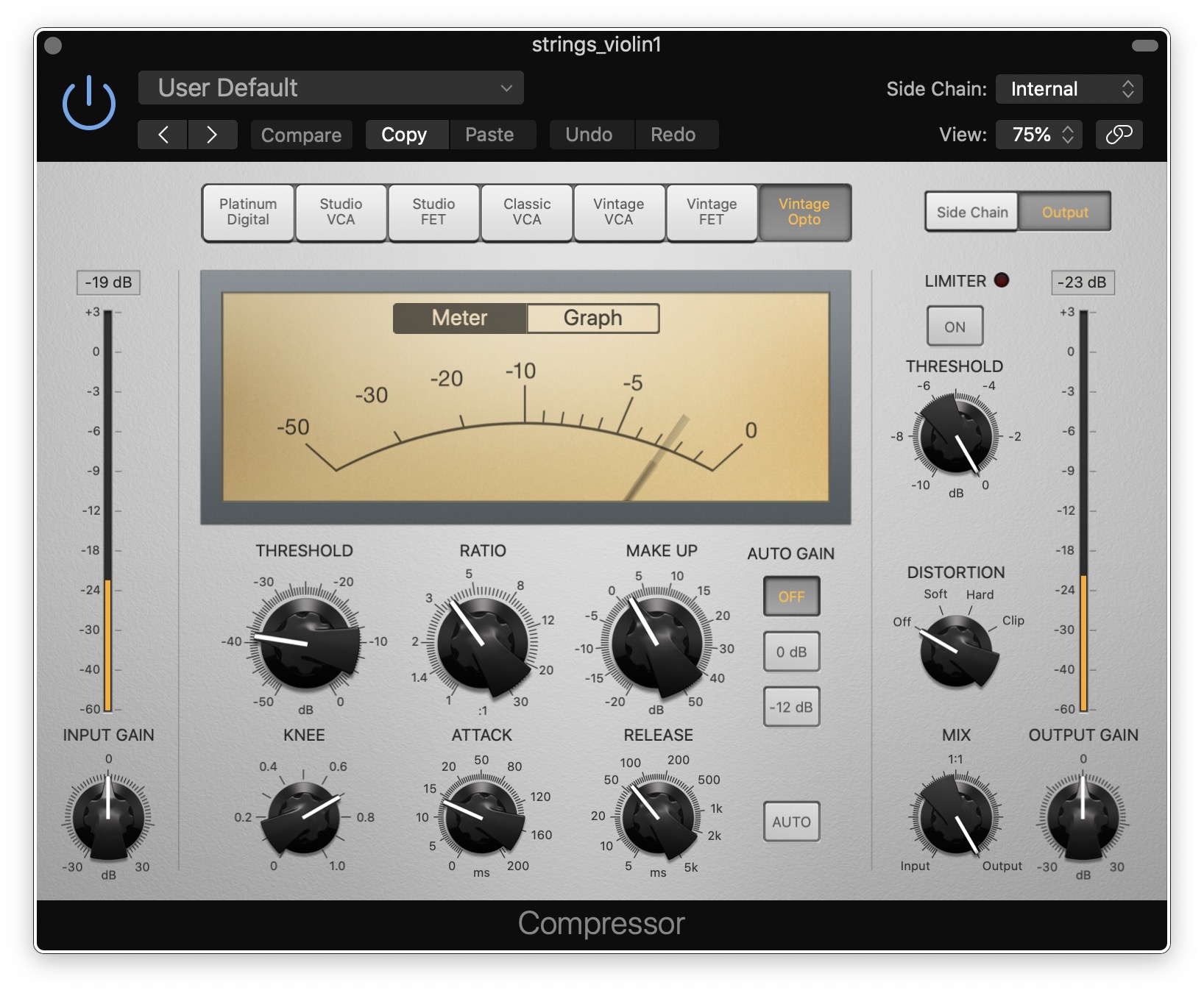 ピアノも、自然な圧縮感にしたいため光学系(Opt)コンプをよく使います。