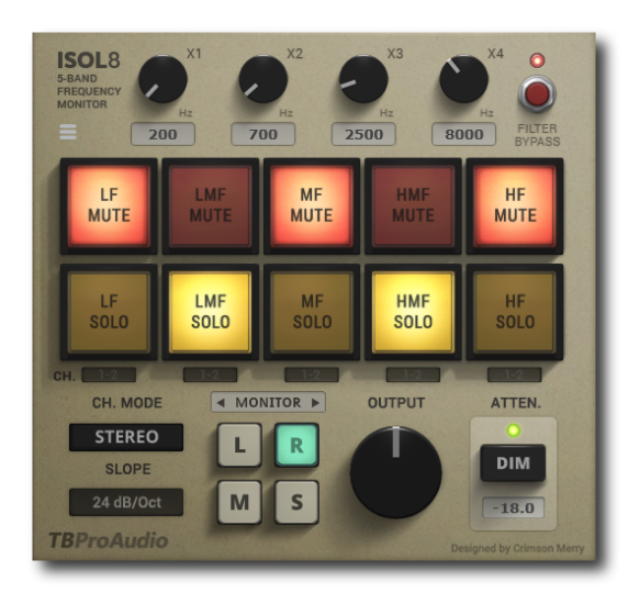 ISOL8は各帯域のみの音を聴くことができるプラグインです。